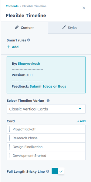 Installation: Navigate to Marketing > File & Templates > Design Tools > @marketplace > Shunyavkash folder to find the Flexible TimeLine. Install it.