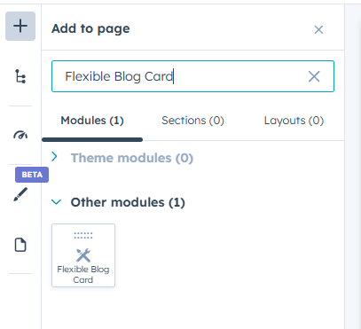 Integration: In the Marketing section, choose Website Menu > Website Pages and add the "Flexible Blog Card " module to the page you want.